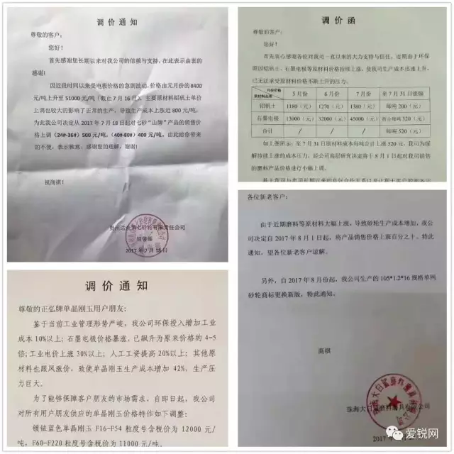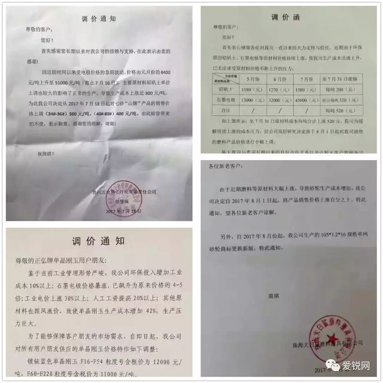 “河北停产,北京停产,山东停产,河南停产,山西停产,京津冀全面停产!终于到了有钱也不一定有货的时代。铁在吼,铝在叫,纸箱在偷笑,棕刚玉蹦蹦跳,抛光也在呱呱叫,电极在咆哮,运费也在往上飘,原料成本发高烧,环保也来凑热闹,涨得我们都想不到,价格已经全部乱了套!各位上帝,别再跟我们说能不能优惠了,你该关心有没有货!”